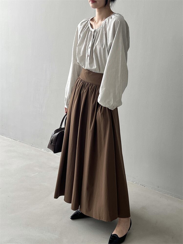 ラウンドネック シャツ レトロ ストライプ トップス 2024秋 上着 長袖 レディース