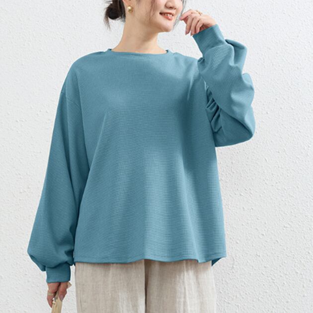 2024新作 レディース 長袖 ワッフル生地 ふんわり袖 ぽわん袖 プルオーバー 緩い 体系カバー