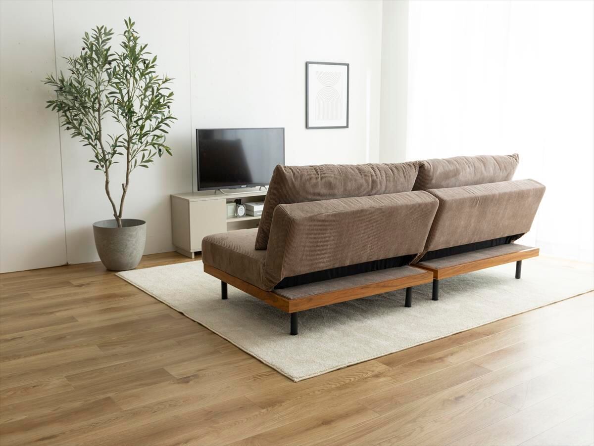 コーデュロイ×木目柄×アイアンの異素材MIXが味わい深い『Ridley(リドリー)』リクライニングソファ